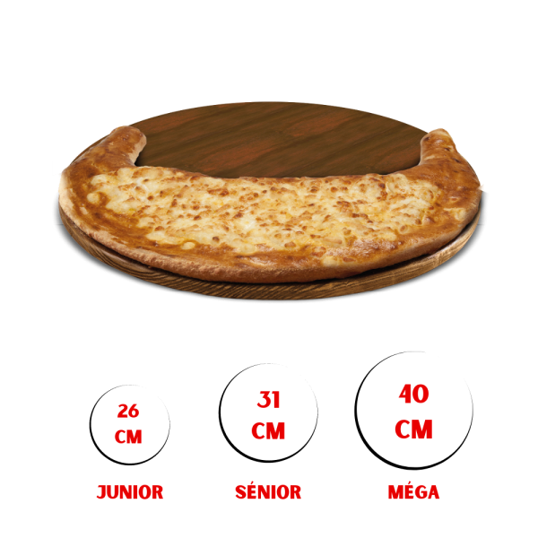 La « Pizza Calzone » est une variante de pizza repliée qui propose une base de tomate et de fromage. Elle est garnie au choix de jambon ou de thon, accompagné d’œuf et d’origan. Disponible en trois tailles différentes : Junior (9,00€), Sénior (14,00€) et Méga (20,00€), cette pizza Calzone offre une expérience culinaire unique avec son pliage caractéristique et une combinaison délicieuse de saveurs.