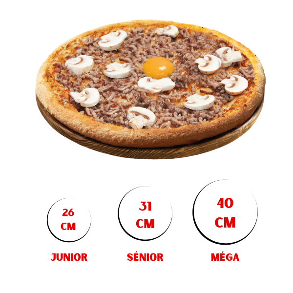 La « Pizza Campione » est une option délicieuse qui propose une base de tomate et de fromage, garnie de viande hachée, de champignons, d’œuf et d’origan. Disponible en trois tailles différentes : Junior (9,00€), Sénior (15,00€) et Méga (22,00€), cette pizza offre une expérience gustative équilibrée et copieuse. Avec la combinaison de la viande savoureuse, des champignons, de l’œuf et de l’origan, la « Pizza Campione » est une option appréciée par les amateurs de pizzas bien garnies et pleines de saveurs.
